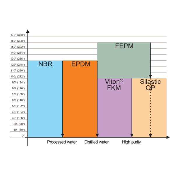 | EPDM | 25~+170℃ | Hot water, water vapor, acid, alkali |